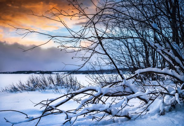 зима кусты снег ветки деревья - скачать картинку