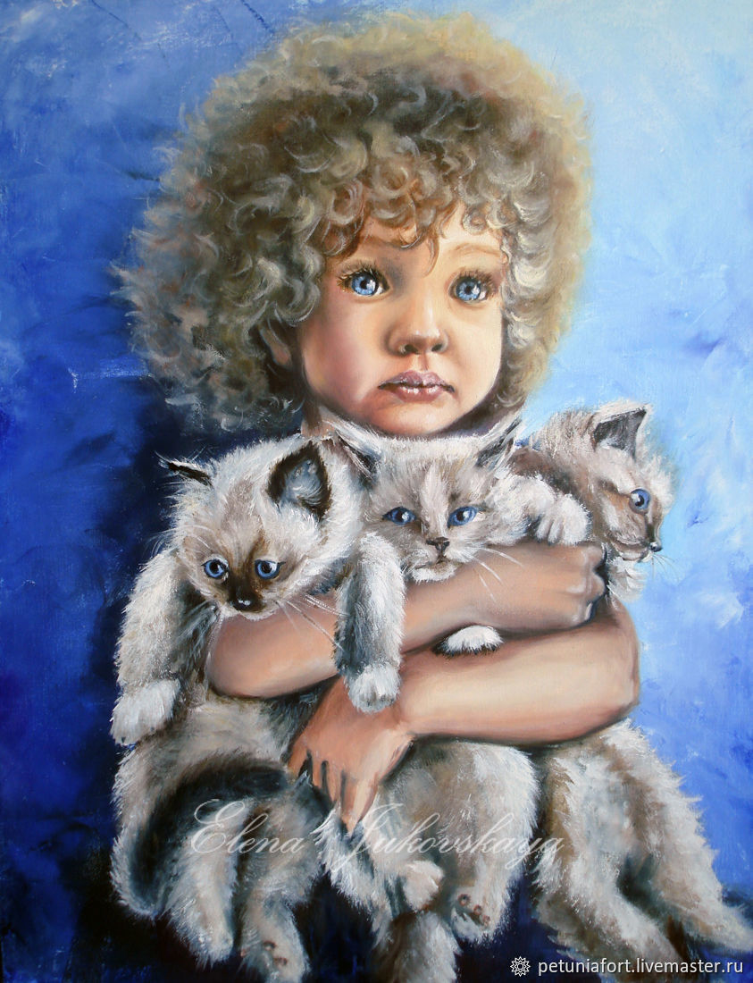 Картины дети с кошкой 142 фото