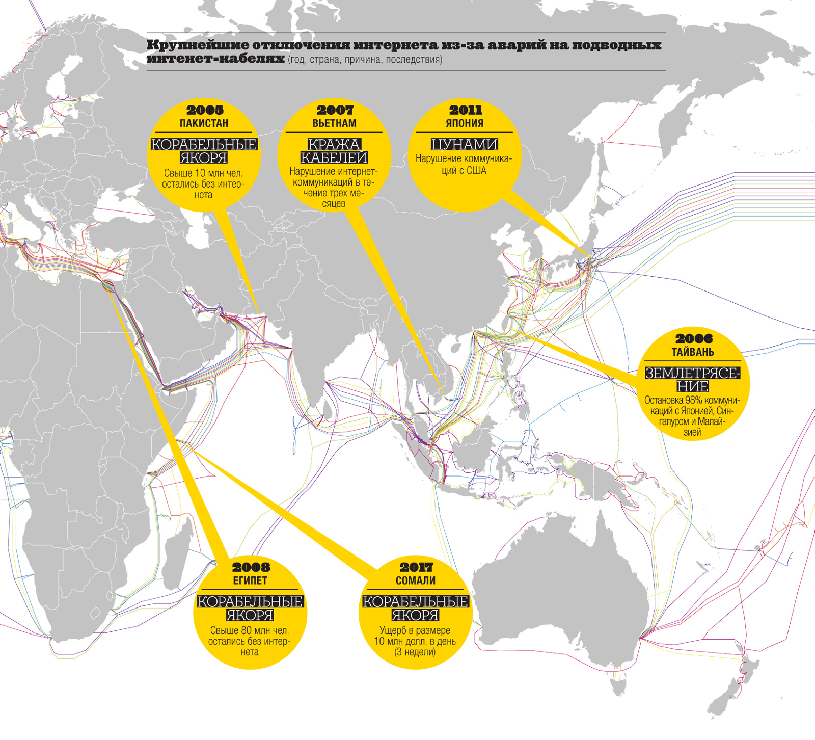 Каждый день через подводные интернет-кабели проходит 15 млн транзакций на сумму 10 трлн долларов.