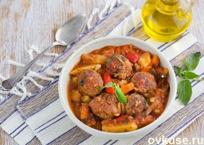 Пошаговый рецепт «Картошка тушенная с тефтелями» - готовьте быстро и вкусно! Ингредиенты . . .