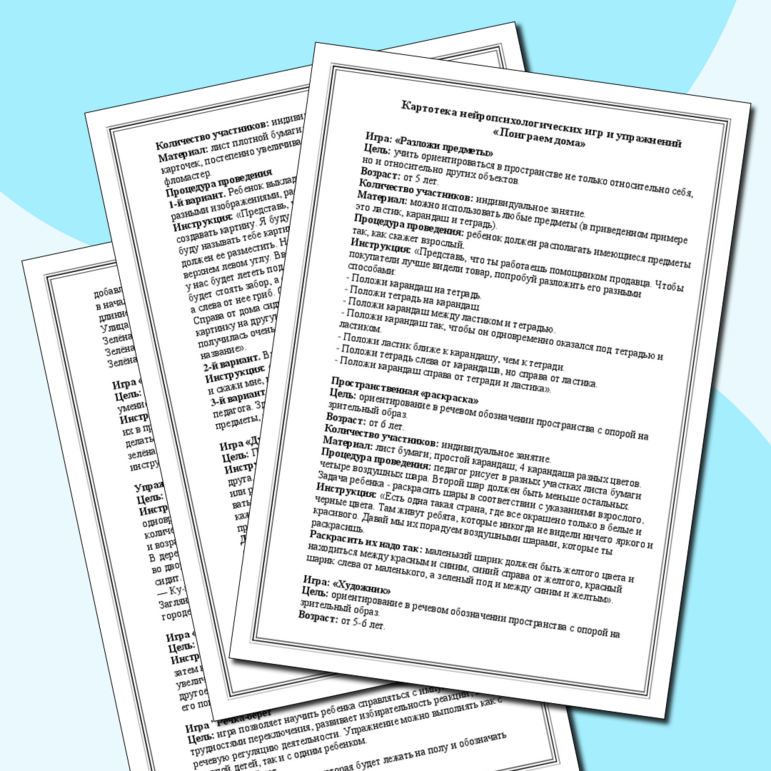 Картотека нейропсихологических игр