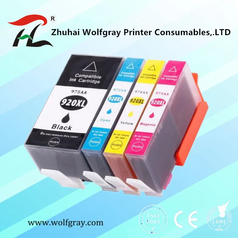 Набор совместимых картриджей для замены оригинальных расходных материалов в принтере HP OfficeJet 6500A . Подходит для замены следующих картриджей: -черный картридж HP 920/920XL (CD971AE/CD975AE);