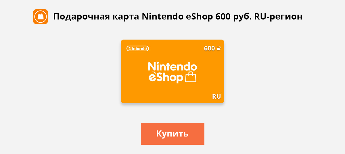 Подарочная карта Nintendo eShop 600 руб . RU-регион в интернет-магазине PlanetCards в России по продаже gift cards . Коды активации и ваучеры по доступной цене . Большой ассортимент карт, автоматическая доставка заказа на электронную . . .