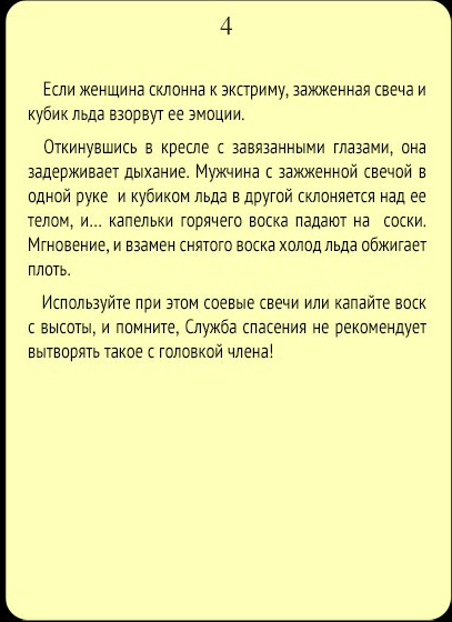 В желтых карточках задания предлагают начать предварительные ласки, а, иногда, даже охладить разгоряченных участников льдом.