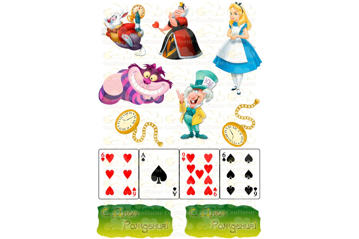 Карты Трефы сахарные и вафельные картинки, шокотрансферные . . .