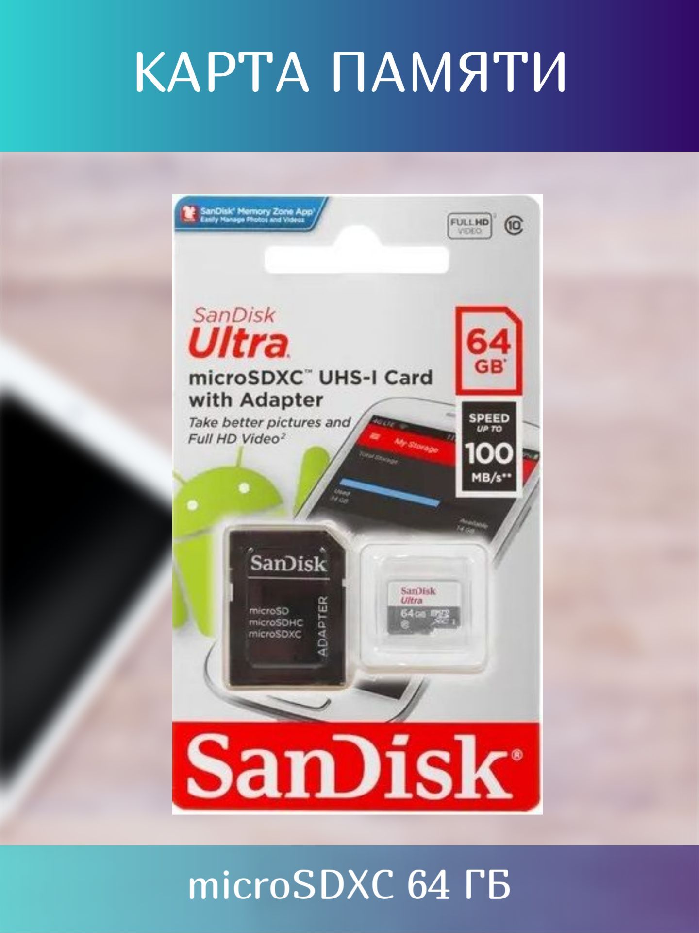 Карты памяти для смартфонов 64 гб 128 фотографий