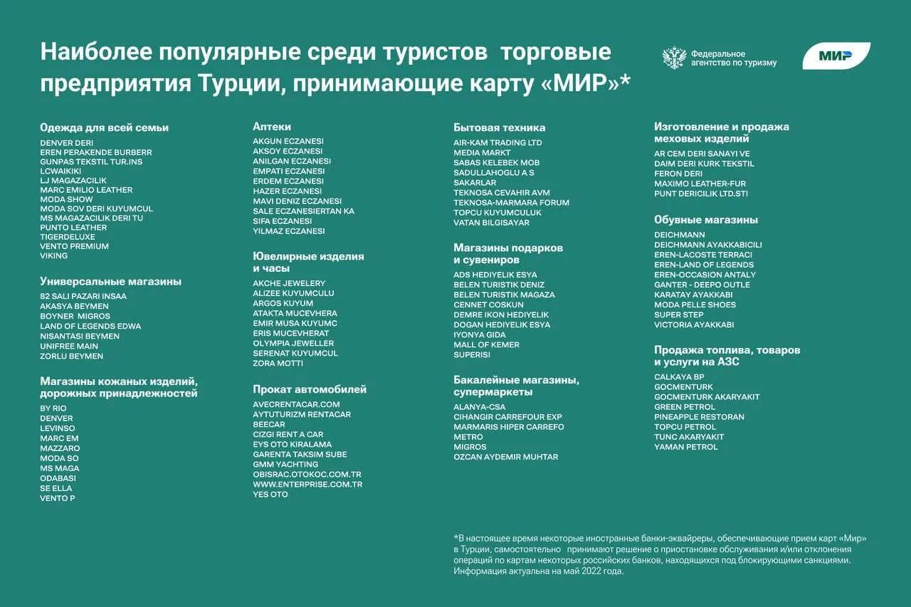 Карты работающие в турции 2025