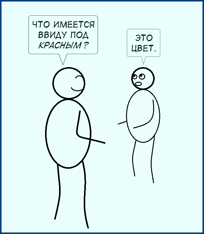 Но ещё бесполезней, это когда определения отправляют вверх по лестнице абстрагирования, на более высокие уровни абстракции – именно такие определения многие из нас дают автоматически. Попробуйте следующий эксперимент с кем-нибудь, кто не знаком с обсуждаемой темой: