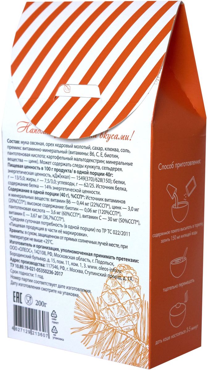 Каша кедровая олеос с клюквой 5 пакетов по 40 г купить в . . .