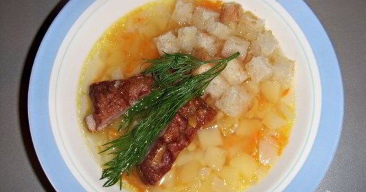 Каша с копчеными ребрышками
