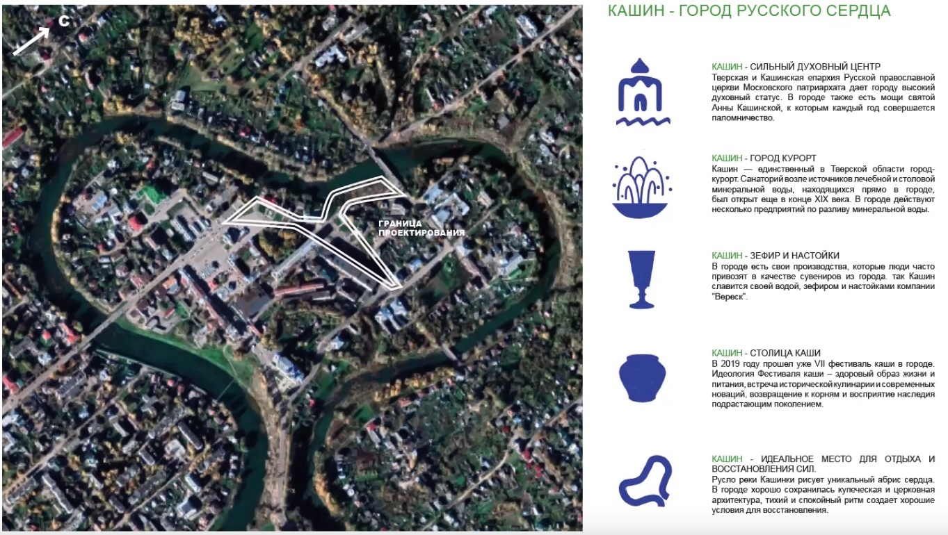 Кашин — один из древнейших городов Тверской земли . Река Кашинка, петляя по городу, образует точный силуэт сердца, но «городом русского сердца» Кашин называют не только за это . .