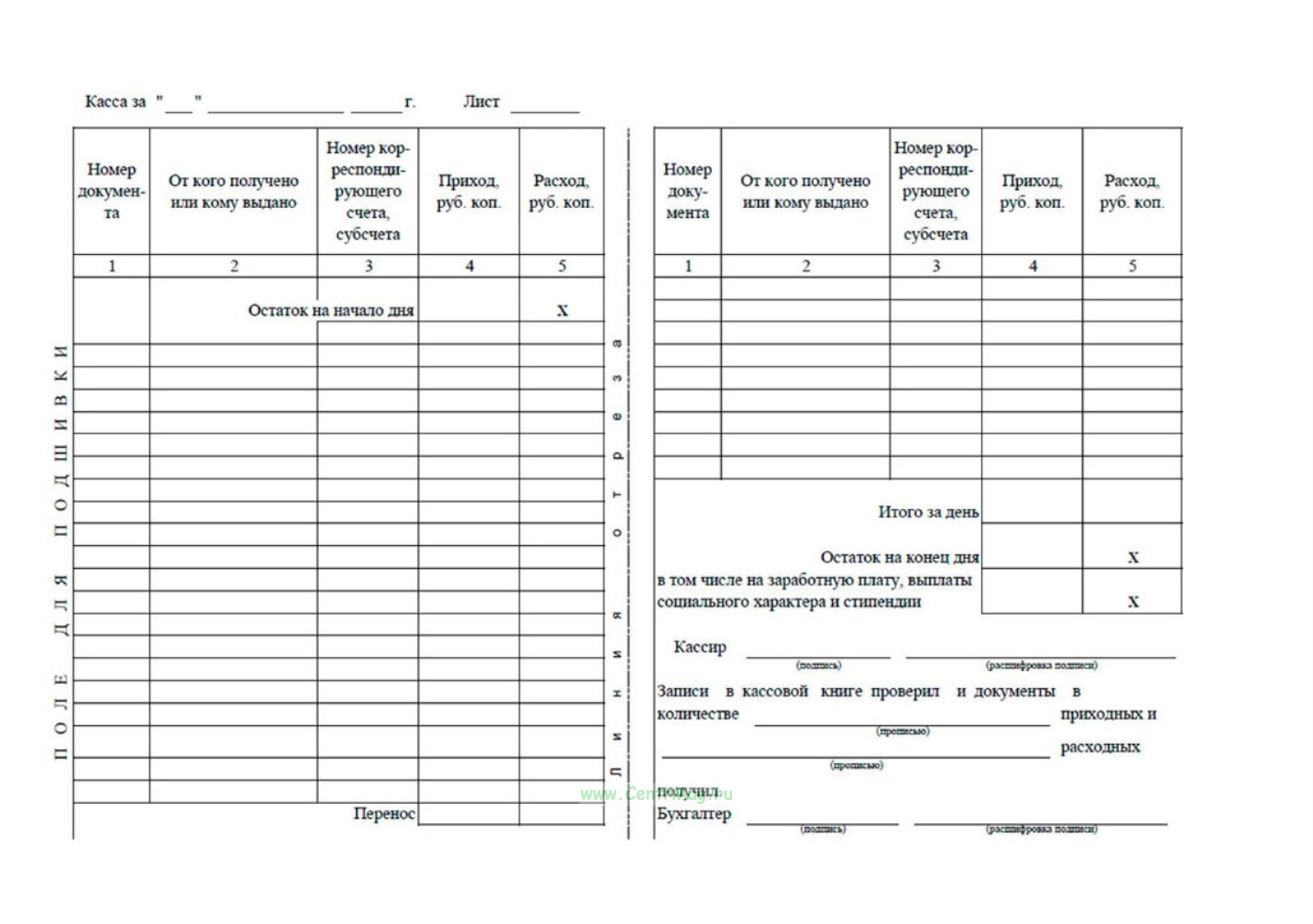 Кассовая книга регистры