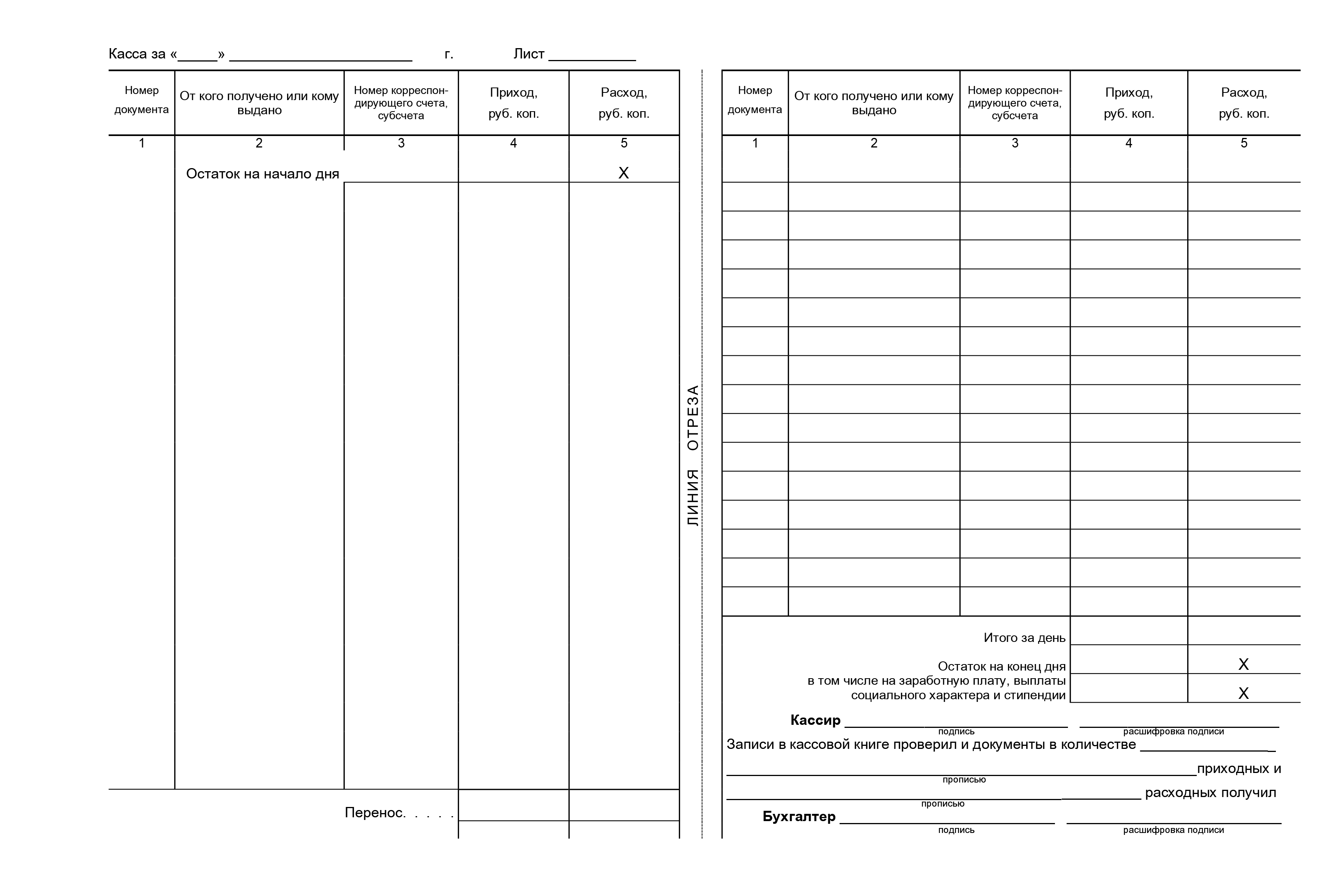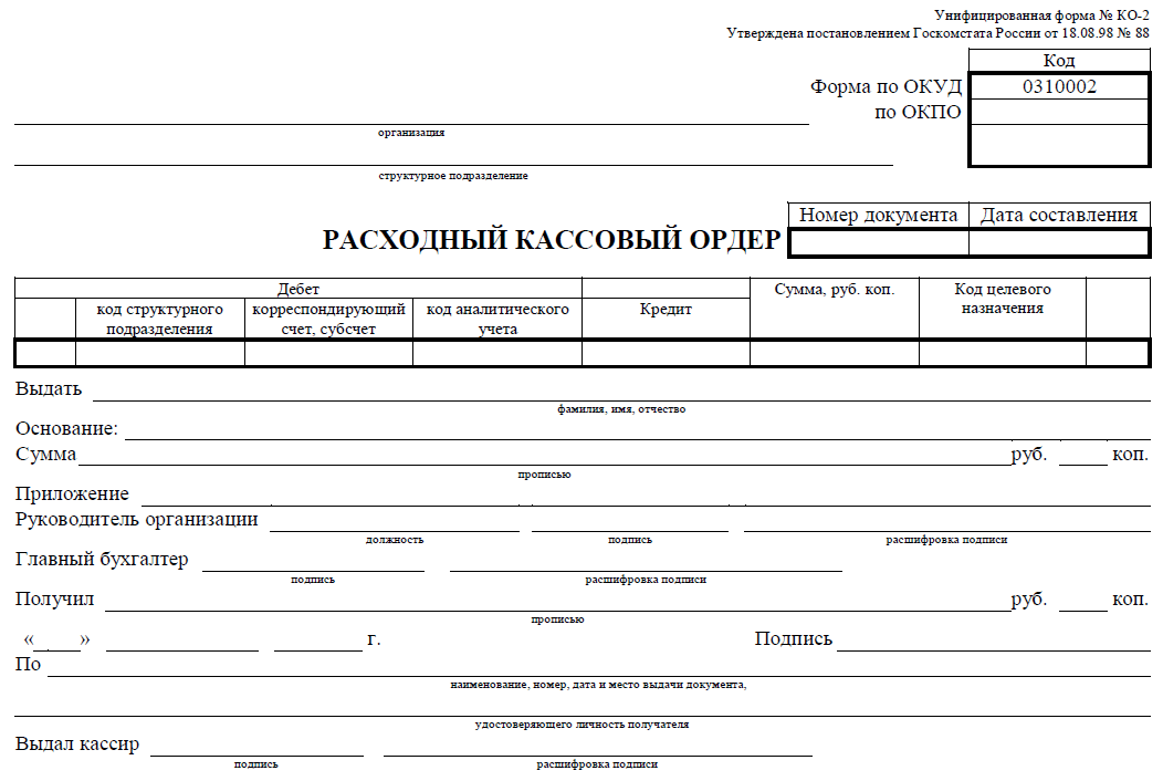 Кассовые документы бланки