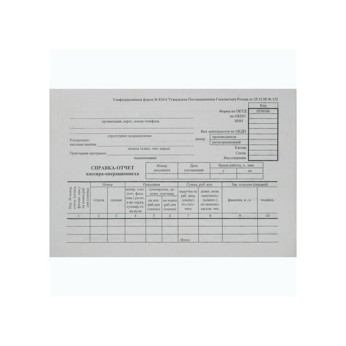 Кассовый отчет бланк 112 фото