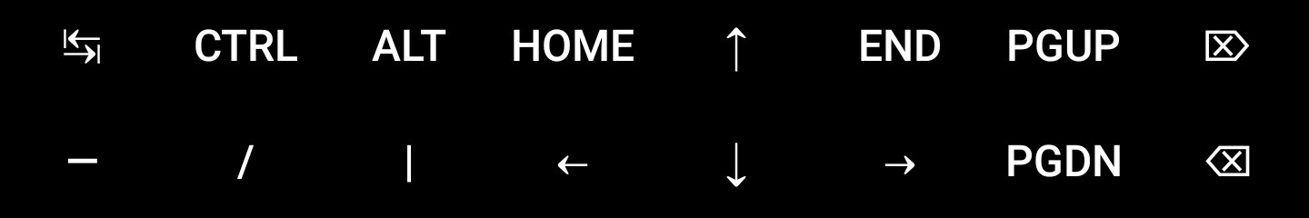 ESC, TAB, CTRL, ALT, - (дефис) и двумя стрелками, вниз и вверх
