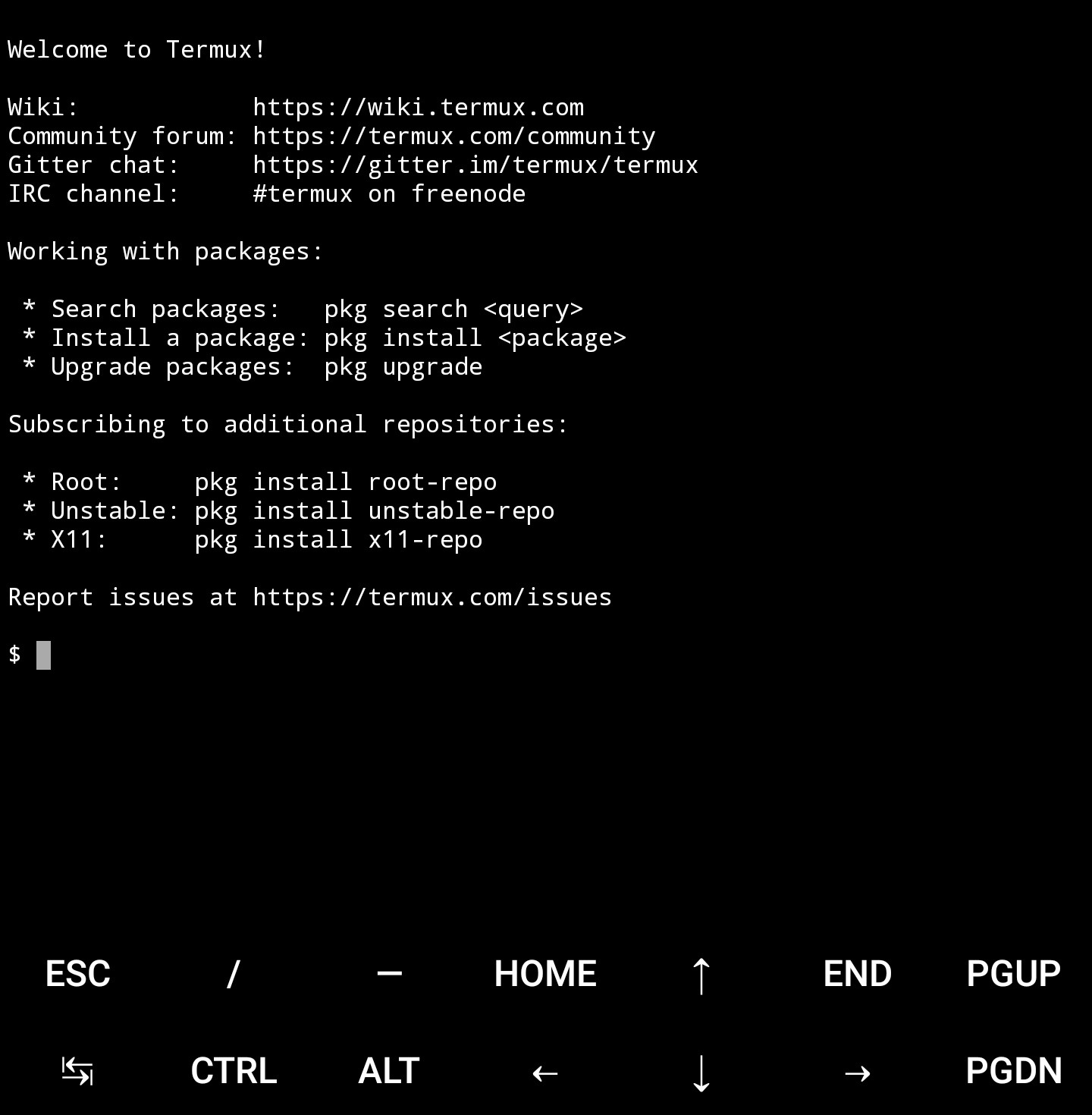 Читаем, выходим через q, устанавливаем. В процессе установки, программа сообщит вам как её запустить. Перед запуском, создайте файл ~/.termux/font.ttf