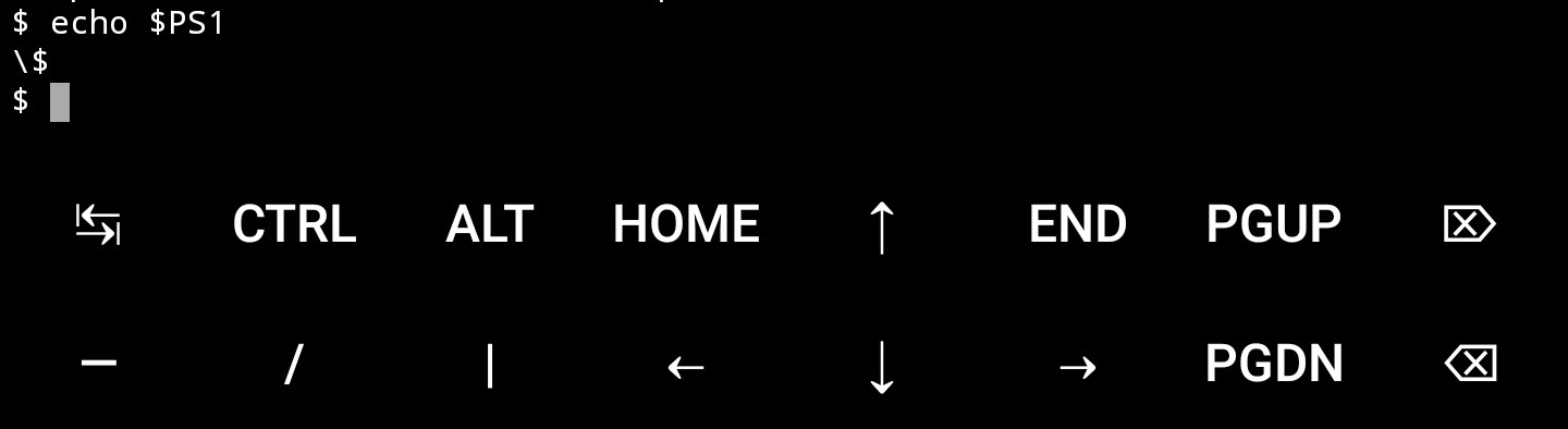 Изменяем строку PS1, сохраняем, перезапускаем термукс