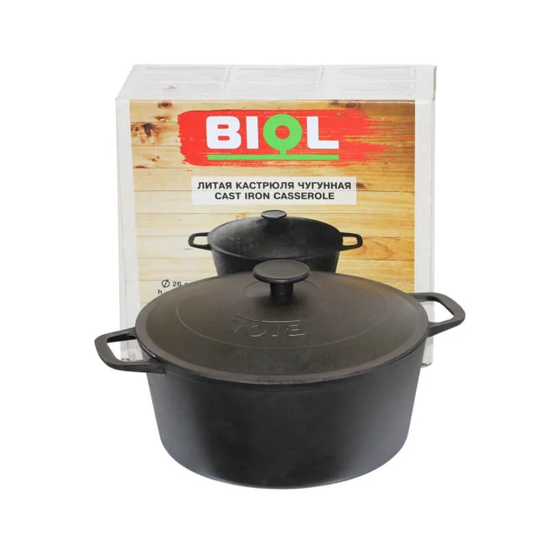 Чугунная кастрюля Биол с крышкой 6 л 02061 . 1381 грн . 1174 грн . В корзину . Ничто не сравнится с естественной антипригарной пленкой чугунной кастрюли Biol, образующейся во время готовки . И чем чаще вы . . .