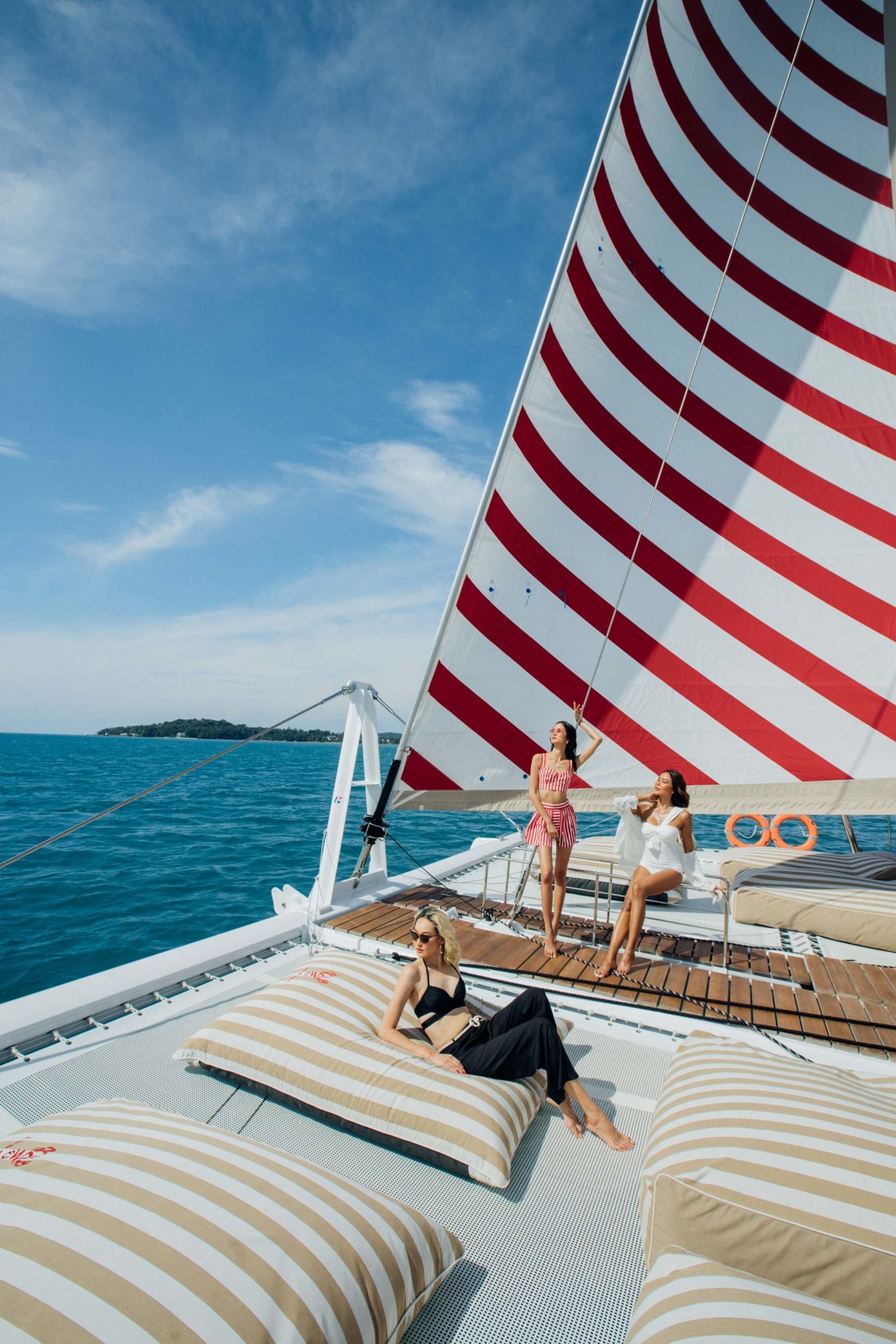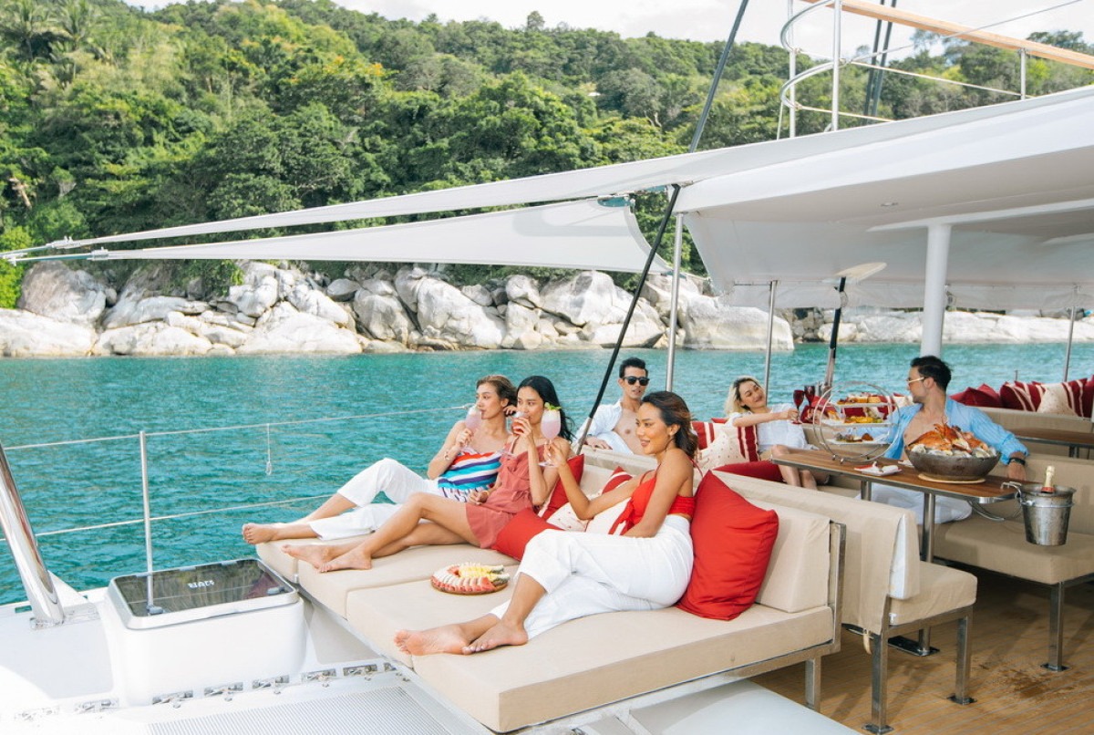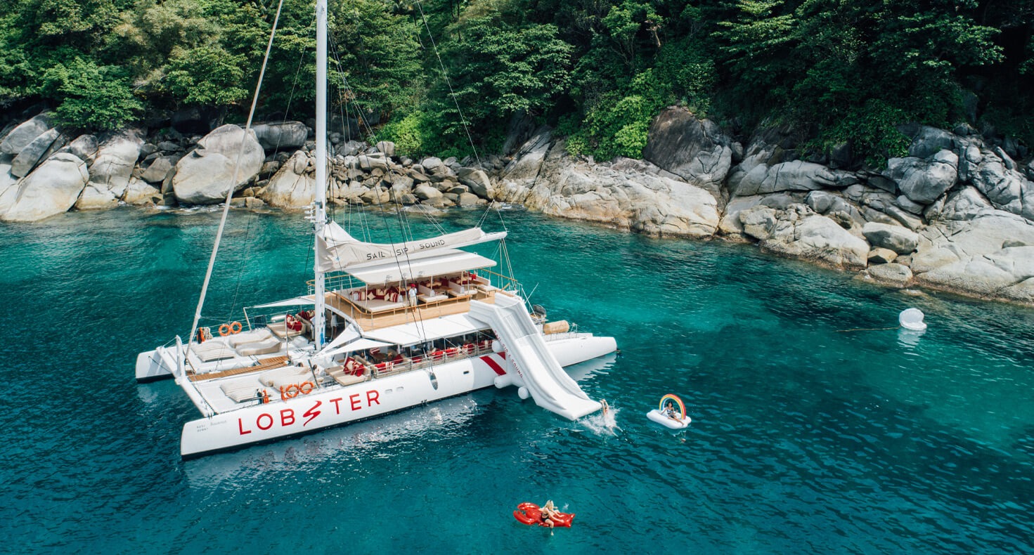 Легкая морская прогулка на комфортабельном, 24-метровом, парусном катамаране-яхте Лобстер к островам Корал и Рача, с встречей заката у мыса Промтхеп и вечерней дискотекой. Катамаран оборудован современной качественной звуковой системой и всю поездку сопровождает профессиональный диджей, подбирающий музыку и задающий прекрасное настроение. Во время остановки у острова Рача можно скатиться с горки в море, покататься на SUP-борде или на подводном буксировщике. Катамаран оборудован комфортными зонами-сиденьями со столиком, также есть носовая часть с подушками на которых можно загорать и наслаждаться завораживающими морскими видами тропических островов и бесконечной морской глади. Так как катамаран довольно большой (78 футов), поэтому прогулка проходит очень комфортно, катамаран практически не качает и не трясет. Всю поездку сопровождет профессиональный фотограф, который запечатлит все моменты экскурсии и потом можете себе скачать понравившиеся фотографии.