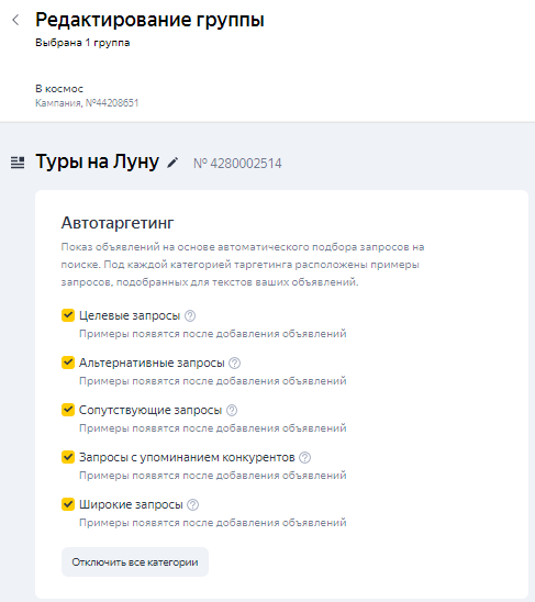 Категории запросов