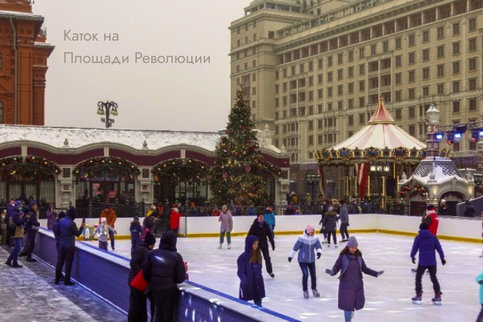 Начнем с катка на Площади Революции. Это бесплатный каток, расположенный в самом центре, работает он в будние дни с 11:00-22:00, а в выходные с 10:00-22:00, но по предварительной регистрации.