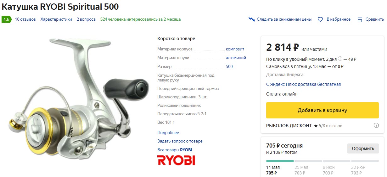 Катушки ryobi spiritual