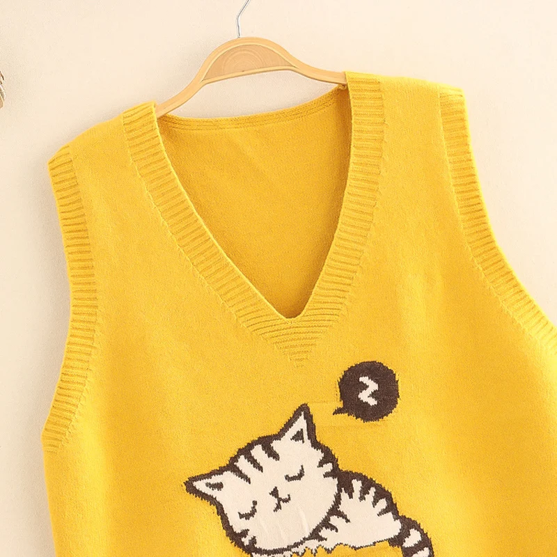 gGKMUSZGДолго искали Kawaii Cat Sleeveless Sweater Women Knit Vest V Neck Vintage Jumper 2021 Autumn Cute Girl Preppy Black Wool Pullover Pink Yellow, но не могли найти? Предоставляем вашему вниманию Kawaii Cat Sleeveless Sweater Women Knit Vest V Neck Vintage Jumper 2021 Autumn Cute Girl Preppy Black Wool Pullover Pink Yellow по лучшей цене на рынке!