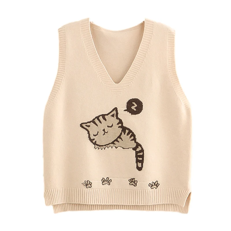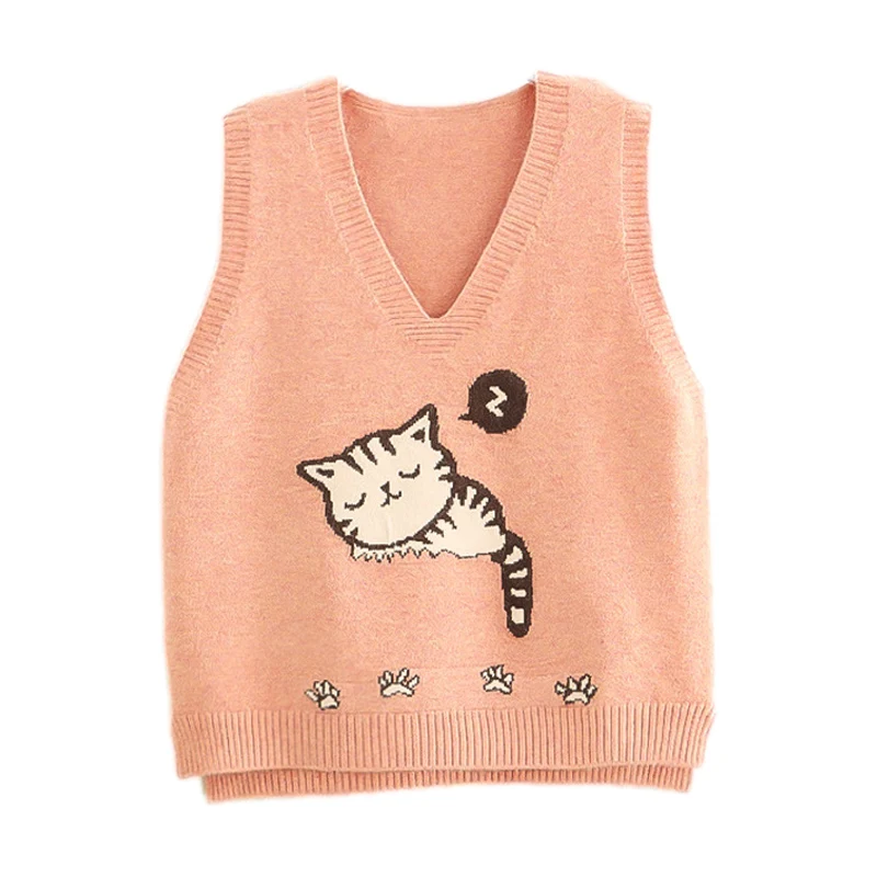 «Kawaii Cat Sleeveless Sweater Women Knit Vest V Neck Vintage Jumper 2021 Autumn Cute Girl Preppy Black Wool Pullover Pink Yellow» по лучшей цене на рынке! Всего за 19$ (1805рублей)
