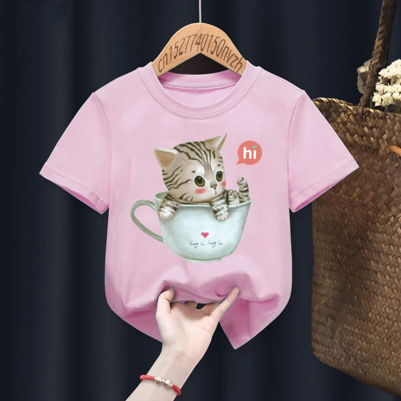 «Kawaii Meow Cat Kitten Girls Print White T-shirt Pink Teacup Cat Kid Summer Funny Clothes Little Baby Y2K Clothes,Drop Ship» по лучшей цене на рынке! Всего за 4$ (380рублей)