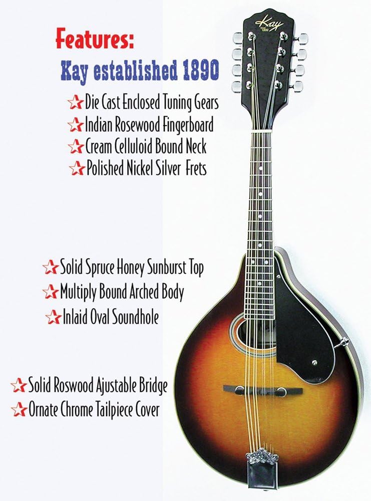 Amazon .com: Kay Mandolin A Style, Solid Spruce Top, 8 . . .