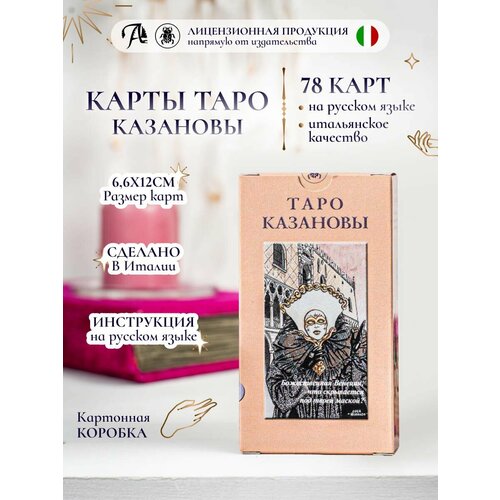 Casanova'nın Tarotu, erotizm prizmasından hayatın gizemlerini ortaya çıkarıyor. Bu bağlamda Arcana, duygular ve duygusallıkla ilgili durumların bir yansıması olarak yorumlanır. Casanova'nın Tarot'u dikkatli sanatsal, üslupsal ve ezoterik araştırmanın meyvesidir. Bu sayede bu büyüleyici destenin kartlarında ortaya çıkan erotizm, günlük varoluşumuzu anlamanın bir nevi anahtarı haline geliyor. Giacomo Casanova'nın kendisi Venedik Cumhuriyeti'nde doğmuştur, dolayısıyla Venedik bu Tarot serisinin tasarımında son derece önemli bir unsurdur. Destenin her görüntüsü gerçek bir yerde olup bitenleri yansıtıyor. 78 kartın her birinin belirli duyguları, olayları ve ilişkileri yansıtan kendi sembolik görüntüsü vardır. Kartlar bilinçaltının sırlarını açığa çıkarmaya, duygularınızı ve duygularınızı anlamaya, başkalarıyla olan ilişkileri anlamaya ve hayattaki yerinizi bulmanıza yardımcı olur. Fal destesi geleceği tahmin etmeye, geçmişi ve bugünü anlamaya ve maneviyatı geliştirmeye yardımcı olur. Desteyle birlikte gelen kitap, her kartın anlamını açıklıyor ve kehanetin nasıl kullanılacağına dair ayrıntılı talimatlar veriyor. Kod çözme, yeni başlayanların destede kolayca ustalaşmasına ve oturumları yönetmek için kullanmasına yardımcı olur. Falcılık Kartları, kendini tanıma ve kendini geliştirme için popüler bir psikolojik araçtır. Kartlar hem yeni başlayanlar hem de tarot okuyucuları, psikologlar, astrologlar ve ezoterizm, astroloji, psikoloji ve falcılık, solitaire, meditasyonun yanı sıra büyücülük, sihir ve dönüşümsel uygulamalarla ilgilenen herkes için bir hediye olarak mükemmeldir. Kartlar ilişkiler, aşk ve iş, iş ve gelecekle ilgili sorunların çözülmesine yardımcı olur. Tüm popüler düzenlerde harika çalışır. Arcana'nın yorumlanmasıyla ilgili talimatlar, yeni başlayanların bile desteyi anlamasına yardımcı olacaktır.Tarot sistemi günümüzün eski, mistik ve popüler sistemlerinden biridir. Geleneksel haliyle gerçekte ne zaman ve hangi koşullar altında ortaya çıktığı konusunda hala tartışmalar var. Çoğu araştırmacı, bu falın köklerinin Eski Mısır gizemlerinde aranması gerektiğine inanıyor. Casanova Tarotu, aşk ilişkileri ve maceralarıyla ünlü Giacomo Casanova'nın yurttaşı yazar Boccaccio'nun kısa öykülerine dayanmaktadır. Sahneler, Venedik manzarasının arka planında çekilmiştir. Arcana, erotizm prizmasından geçerek arzu ve fantezi, şehvetli tutku ve hayranlık, kaba baştan çıkarma ve nazik flört arasındaki gizli bağlantıyı ortaya çıkaracak ve modern insanları kesinlikle ilgilendiren soruları yanıtlayacak. Casanova'nın Tarot'u, katı ezoterik sembolizm ile şehvetli ilişkilerin hafif görüntüleri arasında dikkatli bir üslup araştırmasının ürünüdür.