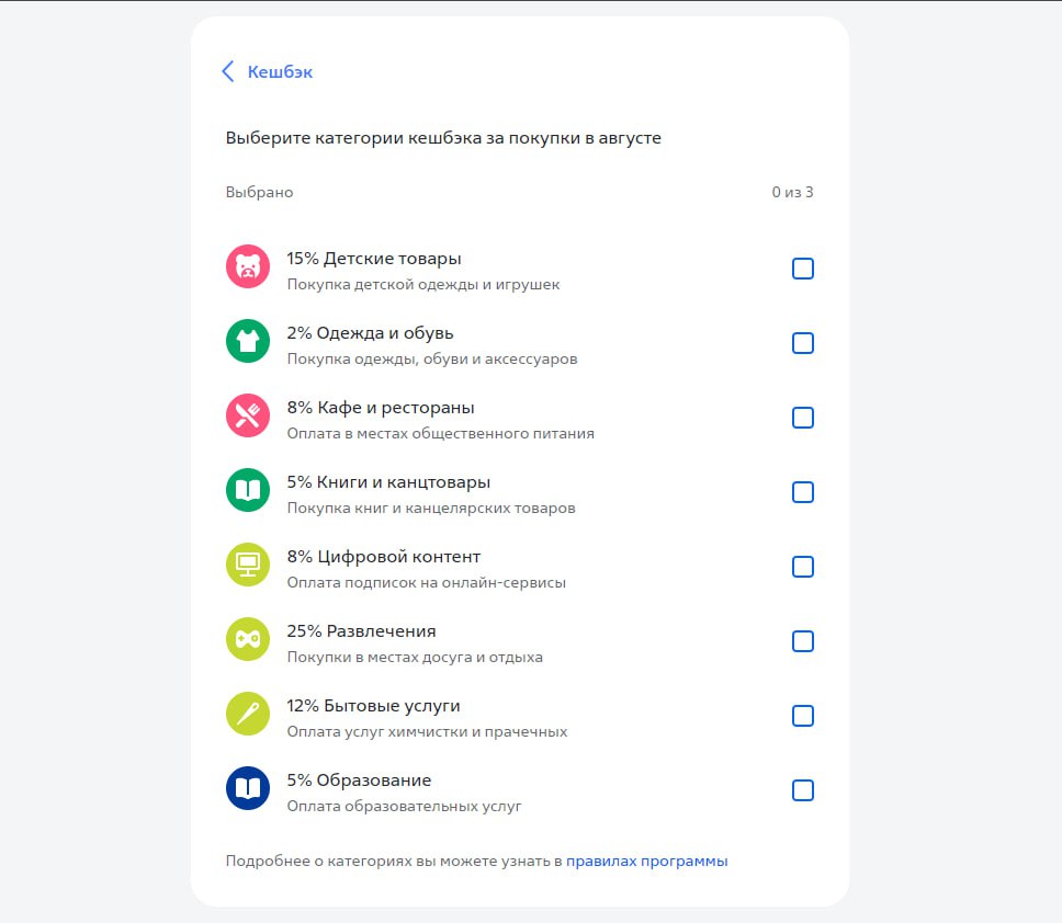 Кэшбэк втб август