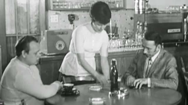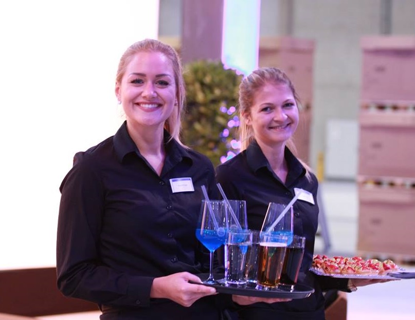 Kellnerin bedient zwei Kunden