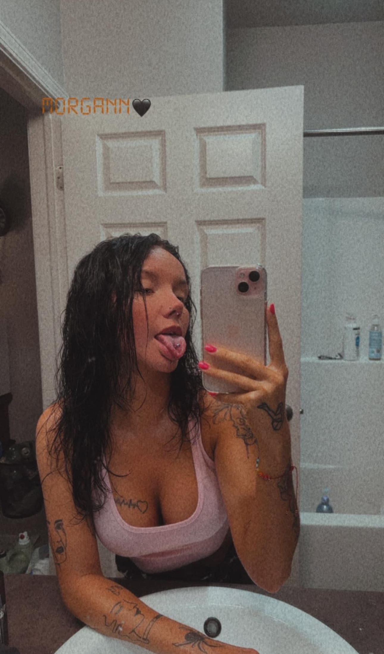 Brunette Hair Baths Mirror Oral Sex
