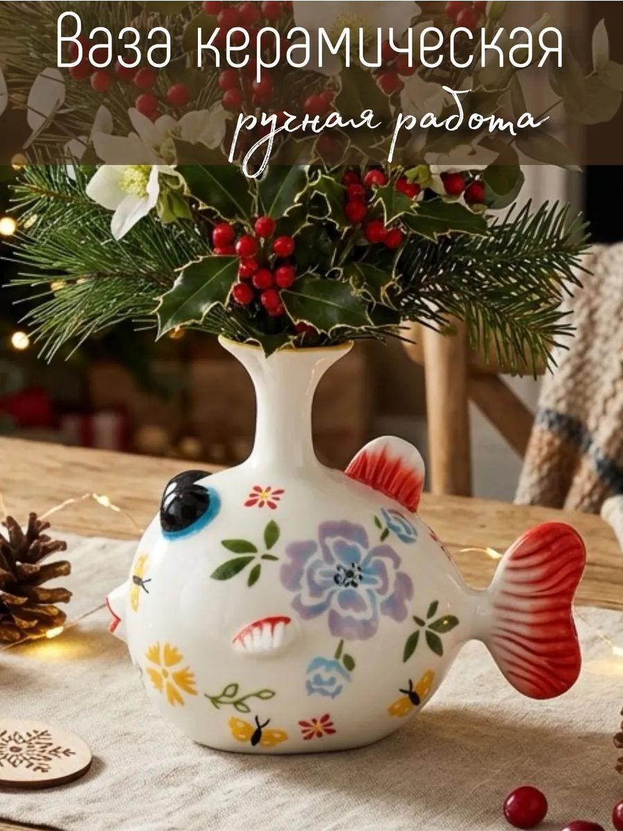 Керамическая ваза с цветами