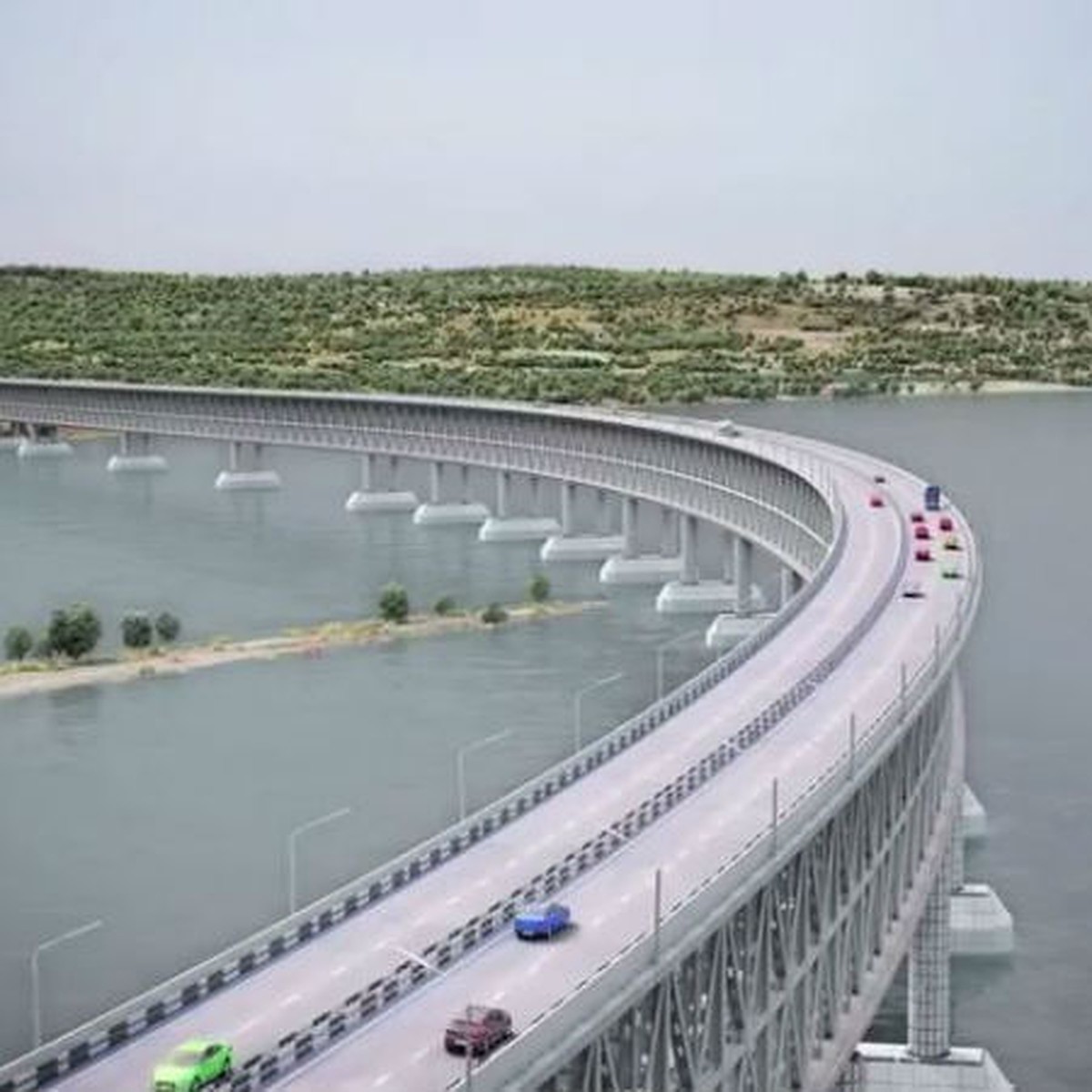 Четырёхполосный автомобильный и двухпутный железнодорожный мосты соединяют берега российского Крыма и Краснодарского края, обеспечивая транспортное сообщение полуострова с материковой частью России .