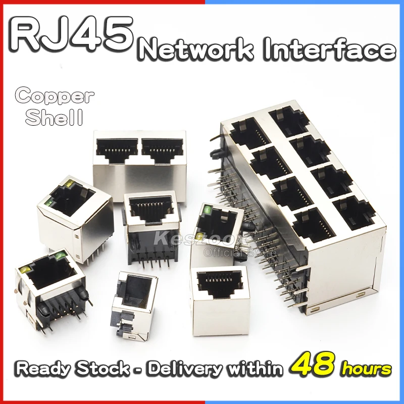 "Keszoox RJ45 Copper Shell Network Interface 8P8C Crystal Head Socket Connector With Shielding Lights Shrapnel No Lamp Ethernet" * Buy Now Just For 7$
