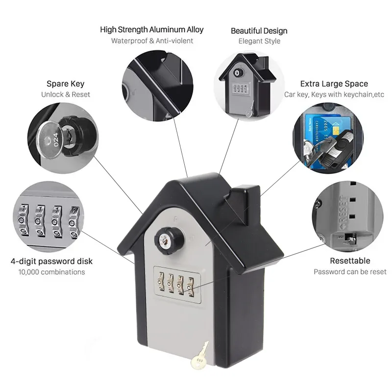 bwtAVFVKHere you can buy Key Safe Box 4 Digital Combination Password Lock Door Metal Outdoor Wall Mount Anti Theft Safe Lock Box for Home Office with Key with free delivery to your post office.