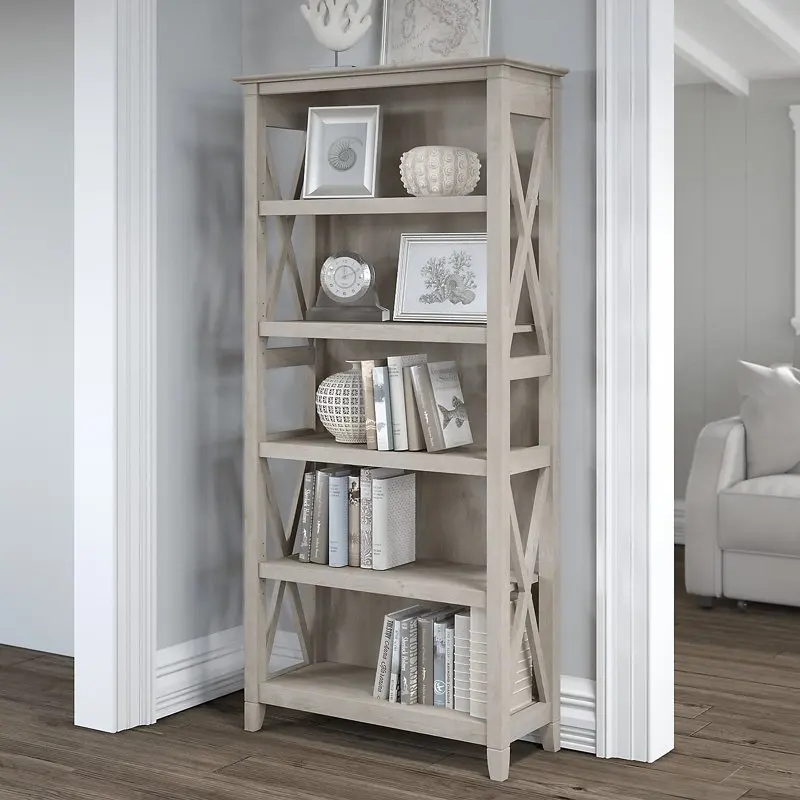 "Key Tall 5 Shelf Bookcase in Washed Gray" * Buy Now With Free Shipping Just For $150