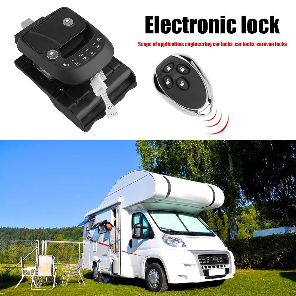 HtagmFXyyHere you can buy Keyless entry door lock handle latch RV lock Wireless remote control car RV cabin door lock with free delivery to your post office.