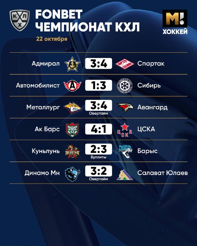 Кхл результаты текущих матчей