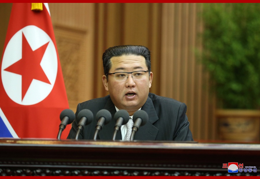 В своем выступлении уважаемый товарищ Ким Чен Ын с большим достоинством поздравил делегатов, с достоинством принявших участие в заседании высших органов власти республики в ожидании десятков миллионов людей, ведущих трудовую борьбу за новую великую победу, твердо веря в социализм и железную волю, Он провозгласил корректирующую политику правительства Республики, направленную на энергичное продвижение нового развития социалистического строительства в соответствии с быстро меняющейся предметной и объективной ситуацией.
