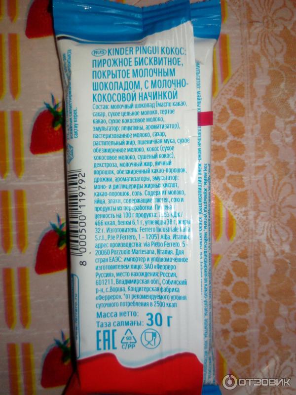 Киндер пингви калорийность