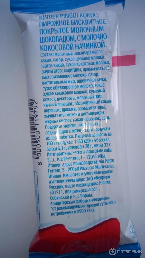 Киндер пингви калорийность 126 фото