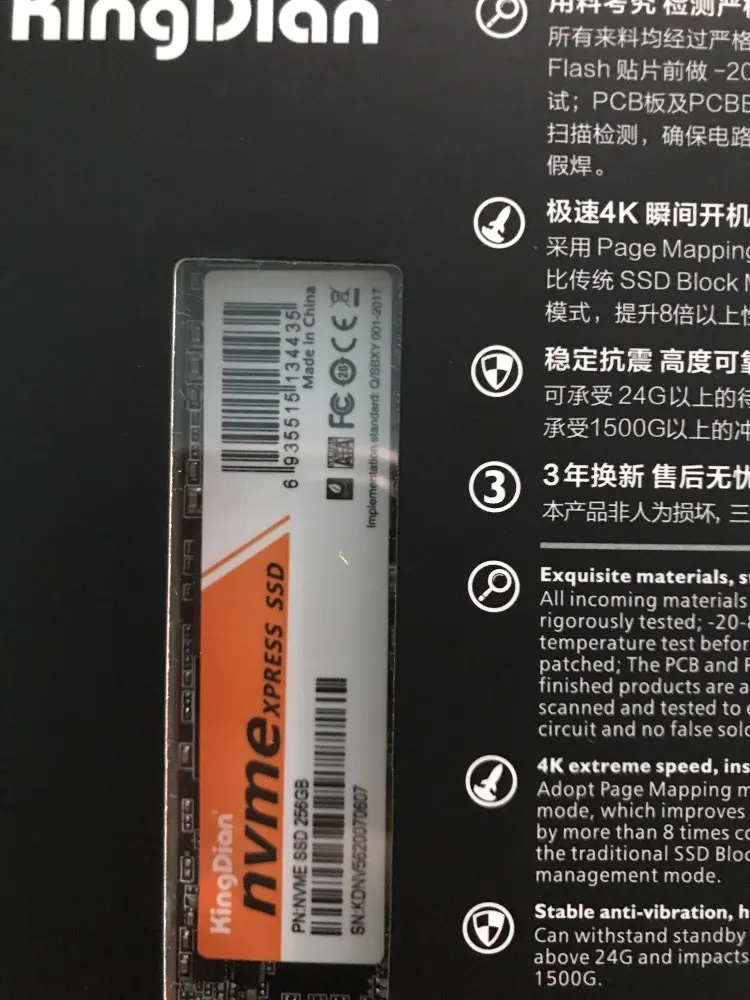 1 . SSD KingDian M .2 NVMe PCIe . 2 . Ad alta velocità, avvio rapido, alta efficienza, migliorare la velocità di gioco . 3 . Flash 3D NAND, PCIe Gen3 .0x4, utilizza il controller originale, attraverso test a lungo termine e standard elevati su più piattaforme . 4 . Gli SSD PCIe hanno elevate stabilità e prestazioni . Il pacchetto include: