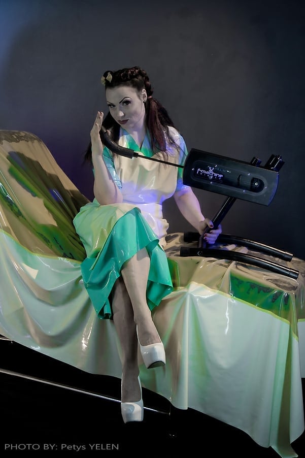The first step was to don my own form of PPE by putting on my green medical ‘scrubs’ to create the perfect rubber medical fetish setting for the C20 cure to begin …..