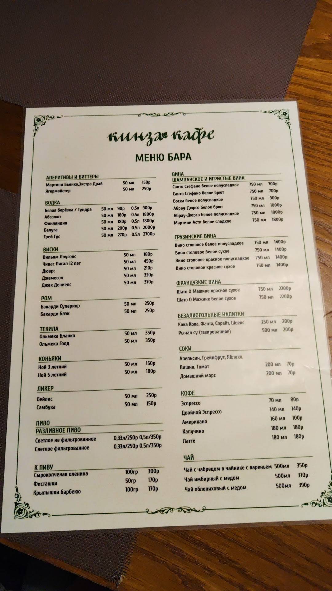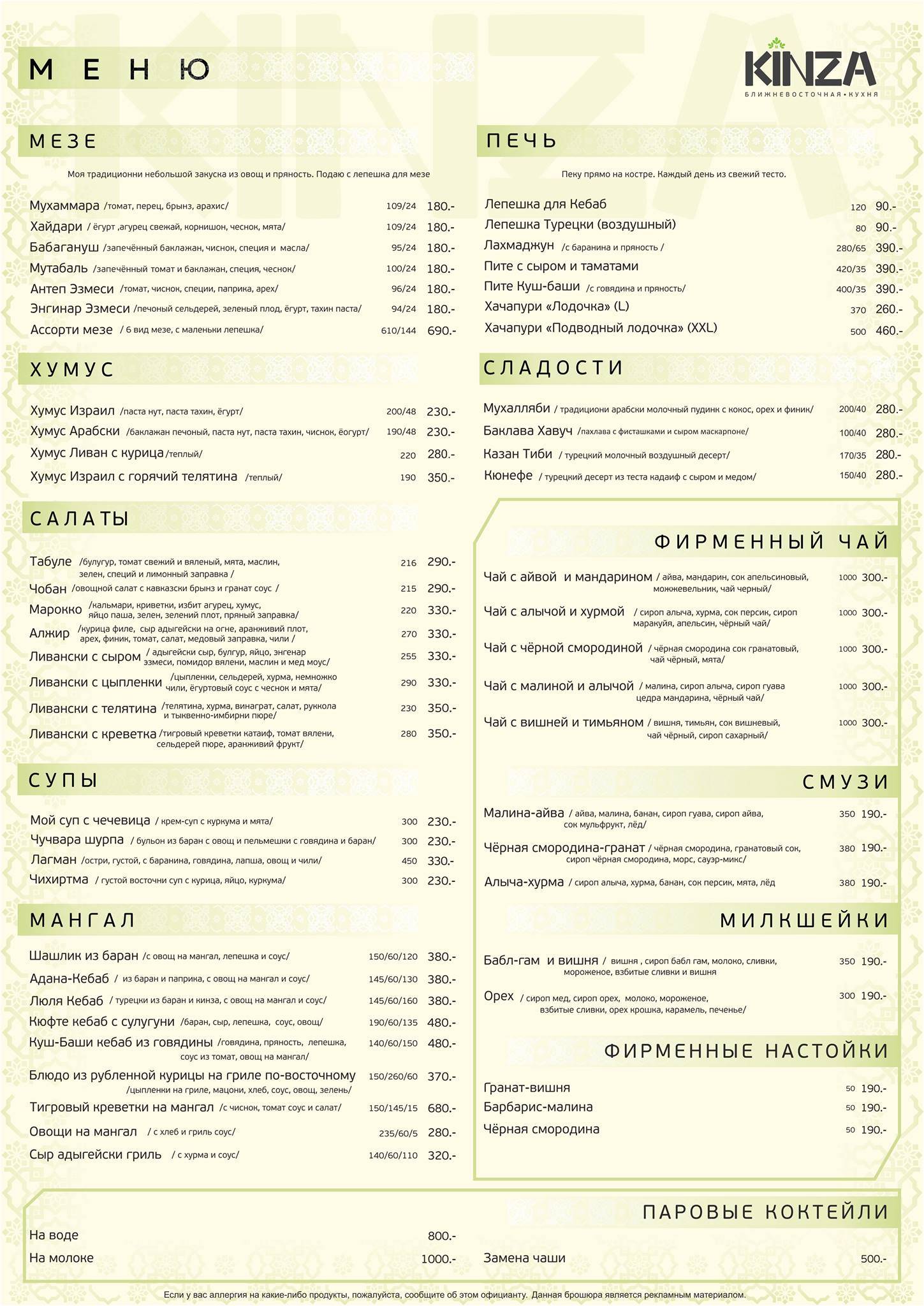 Кинза меню екатеринбург