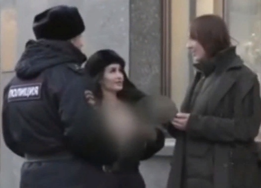 Кира Майер, осужденная за нападение на сотрудника, ПСД устроила пранк — она ходила по улицам в форме полицейского и предлагала прохожим потрогать свою голую грудь .