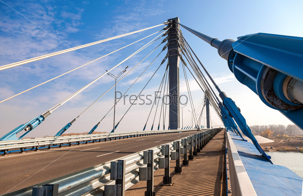 Мост через реку Самара . Мост дает развитие левобережной части Самары и обеспечивает выход на трассу М5 «Урал», трассу Самара-Чимкент и другие федеральные дороги . Фото . На мосту