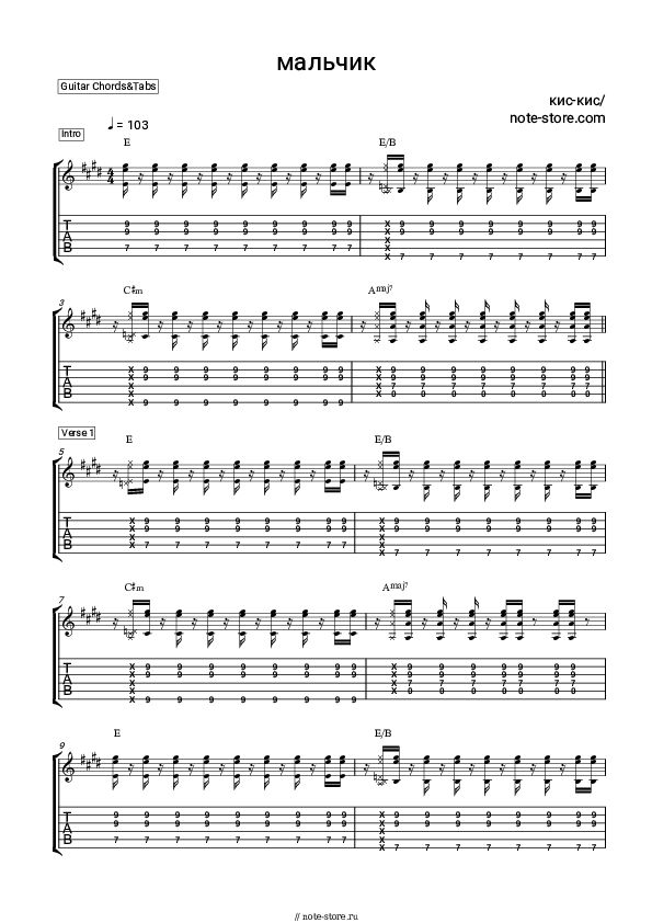 Кис кис мальчик аккорды на гитаре